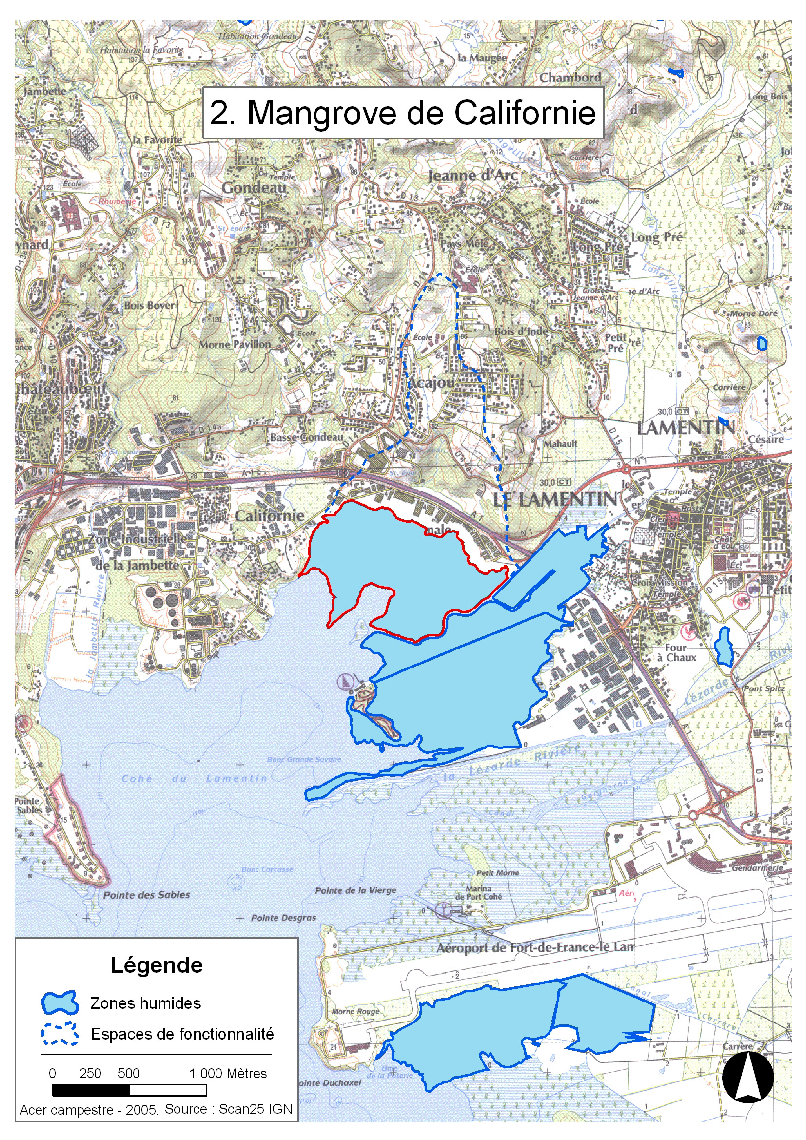 | 1.3.2 Mangroves sur sédiments argileux | Mangrove de Californie (Le Lamentin) | ZH2 | DG2 | I2 |