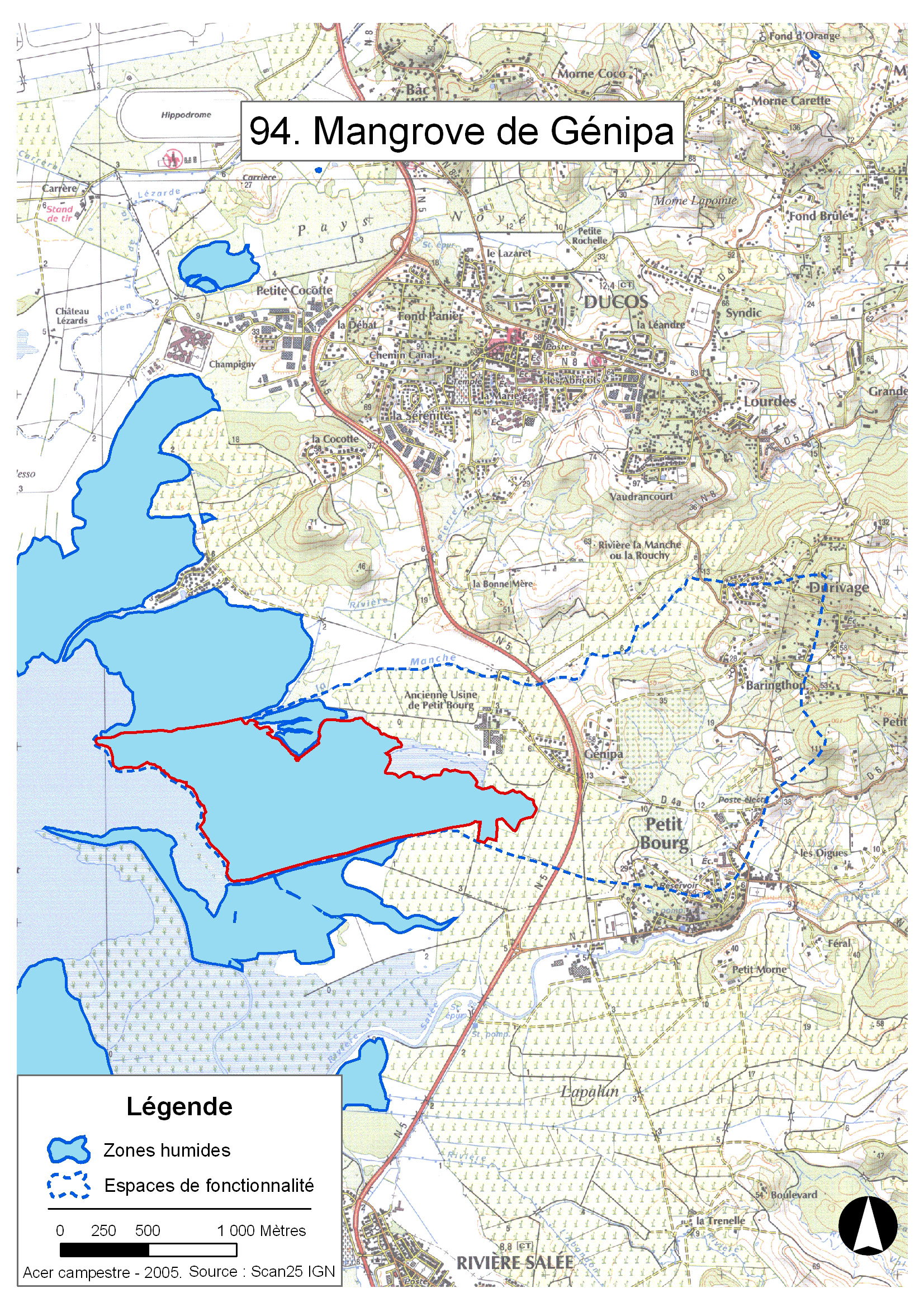 | Mangroves sur sédiments argileux et milieux ouverts connexes | Mangrove de Génipa (Ducos, Rivière-Salée) | ZH94 | DG94 | I94 |