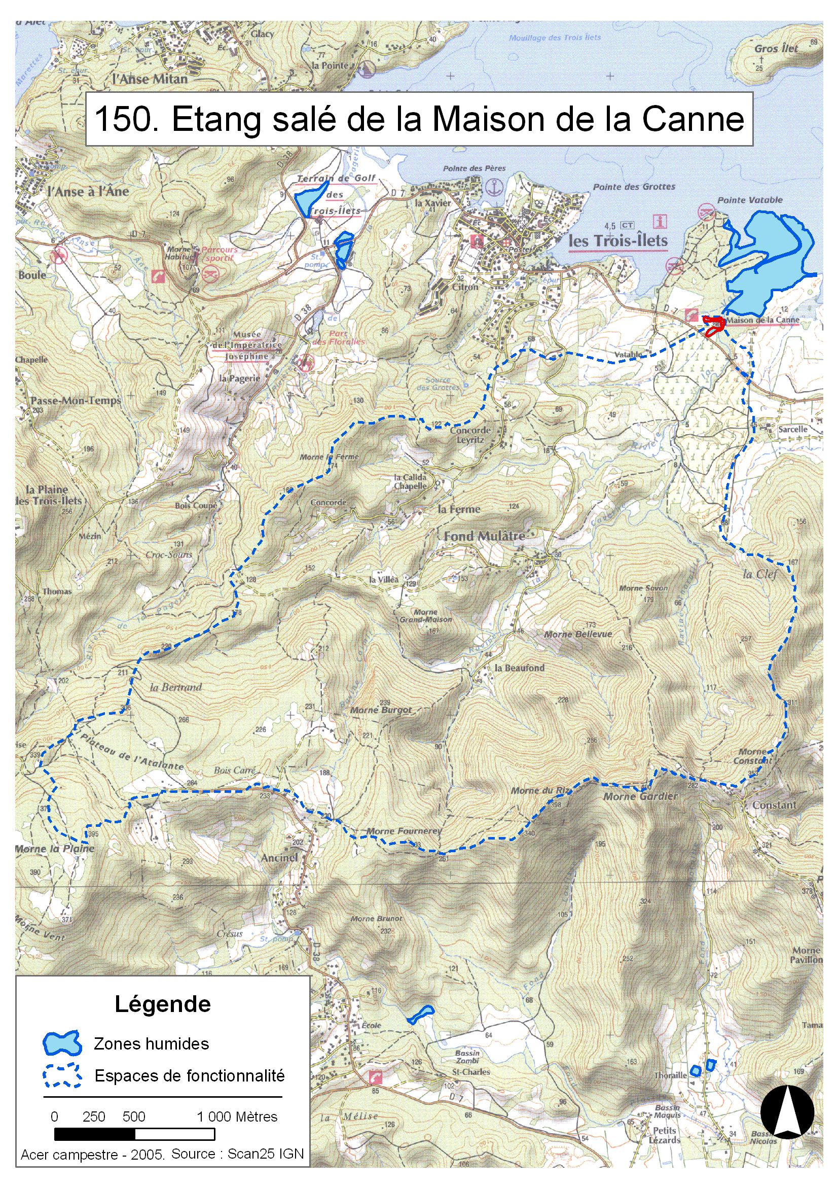 | Etangs et mares saumâtres ou salés | Etang salé de la Maison de la Canne (Les Trois-Ilets) | ZH150 | DG150 | I150 |